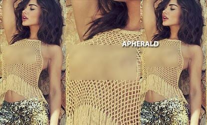 The actress has flashed her Inner Beauty wearing a Golden Netted Fringed Top with nothing inside it. It's quite a bold move from the Brits Beauty despite she's ready for her wedding. Well, you can take a look at that photo below,