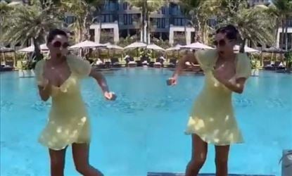 हालांकि नोरा का यह लेटेस्ट वीडियो उनके फैन पेज पर शेयर किया गया है। इस वीडियो में नोरा स्विमिंग पूल के किनारे धांसू डांस करती हुई दिख रही हैं। उनके डांस स्किल की जितनी तारीफ की जाए उतनी कम है। वहीं येलो कलर की ड्रेस में नोरा कमाल की खूबसूरत लग रही हैं। लुक के साथ उनका बन हेयर स्टाइल भी उन पर खूब फब रहा है, साथ ही मुखड़े पर काला चश्मा उनकी खूबसूरती में चार चांद लगा रहा है।