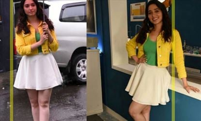 Tamanna exposing her Milky White Thighs in a short skirt while shooting an Ad - 12 Hot Photos Inside