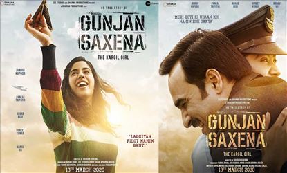 इसी के साथ पोस्टर शेयर करते हुए लिखा गया 'उसे बताया गया था कि लड़कियां उड़ नहीं सकती।जबकि वो खड़ी होकर उड़ने का फैसला ले चुकी है।दूसरे पोस्टर में जाह्नवी कपूर पायलट की आउटफिट में नजर आ रही हैं। इस तस्वीर में जाह्नवी बतौर पायलट अपनी पूरी टीम के साथ नजर आ रही है। इस पोस्टर पर कैप्शन में लिखा गया है, 'भारत की पहली एयरफोर्स महिला ऑफिसर जिसने युद्ध में हिस्सा लिया।'
