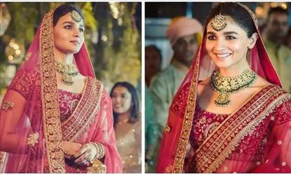 बॉलीवुड की सबसे चुलबुली और सफल अभिनेत्रियों में से एक आलिया भट्ट वैसे तो अक्सर ही चर्चा में बनी रहती हैं मगर जैसा की हम सभी जानते हैं आलिया पिछले कुछ समय से अपनी शादी की खबरों को लेकर आए दिन सुर्खियों में बनी रहती हैं और इसी बीच उनके ब्राइडल लुक की फोटोज सामने आई हैं। जिसे देखने के बाद तो जैसे सभी अटकलों से पर्दा उठ गया हो। पहले तो आपको ये बता दें की आलिया की जो तस्वीरें सामने आई हैं उसमे उन्होंने शादी का लाल जोड़ा पहना हुआ है और इस परिधान में आलिया काफी खूबसूरत लग रही हैं। आलिया की ये तस्वीरें सामने आते ही सोशल मीडिया पर वायरल हो रही हैं। मगर आपको बताते चलें की आलिया ने अभी शादी नहीं की है और ना ही ये उनकी वैडिंग की तस्वीर हैं, असल में आलिया ने फैशन डिजाइनर हाउस 'मोहे' के लिए एक एड किया है और इसमें ही वो ब्राइड के लुक में नजर आ रही हैं।