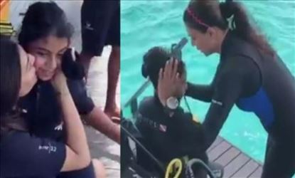 সুস্মিতার ইনস্টা ভিডিওতে দেখা যাচ্ছে, বিকিনি পরে সুমিদ্রে নেমে পড়েছেন তিনি। গাঢ় মেরন রঙের বিকিনিতে জলের নিচে ক্যামেরায় ধরা পড়েছেন সুস্মিতা। সঙ্গে ভিডিও ক্যাপশন- ৪৩ বছর বয়সে স্কিন ড্রাইভ শিখছি। যে কোনও বয়সেই শেখা যায়। শুধু শুরু করা দরকার। তারপর স্বাভাবিকভাবেই সেটা চলতে থাকবে। আমি সমুদ্রে নাচতে না শেখা প্রযন্ত ডাইভিং চালিয়ে যাব। পাশপাশি ধন্যবাদ দিয়েছেন প্রশিক্ষক হুসেন হাসামকে। শুধু তাই নয়, স্কুবা ডাইভং করতেও দেখা গিয়েছে তাঁকে।