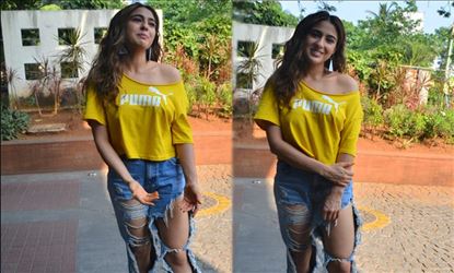 बता दें सारा अली खान की यह तस्वीरें एक रेस्टोरेंट के बाहर की हैं, जहां वो येलो टॉप में कटी-फटी जीन पहने दिखाई दे रही हैं। सारा की यह तस्वीरें देख फैंस हैरान हो रहे हैं और उन्हें कमैंट कर रहे है। उनका इन कपडों में यह लुक देख एक यूजर ने बोला, इतनी फटी जीन, जेब में बम ब्लास्ट हो गया क्या, ऐसे ही अन्य यूजर्स ने उनके लुक पर अटपटे कमैंट किये। लुक की बात करें तो इस दौरान सारा येलो टॉप, ब्लू कलर की कटी-फटी जीन और व्हाइट शूज में नजर आ रही हैं, कलरड ओपन हेयर्स में सारा मीडिया के सामने जमकर पोज दे रही हैं। उनके इस लुक को कई फैंस द्वारा खूब पसंद किया जा रहा है। काम की बात करें तो 'केदारनाथ' से डेब्यू करने वाली सारा अली खान इन दिनों फिल्म 'कुली नंबर 1' की शूटिंग कर रही है।