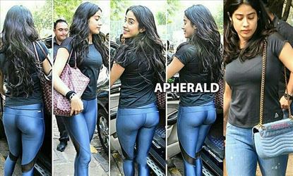 Jhanvi was recently spotted in a White and Red—striped crop top revealing her waistline and teasing navel. She was totally blowing down everyone with her 'Oomph' factor and she resembled the typical bollywood material. Her photos went viral on