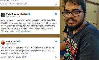 विपिन शर्मा ने लिखा है- कई तकनीशियन कम पैसों में भी ओवर टाइम करते हैं। यह खौफनाक है। वे डरते हैं कि काम न छिन जाए इसलिए चुपचाप रहकर काम कर रहे हैं। कई बार तो उन्हें उनके काम के भी पूरे पैसे नहीं मिलते। जबकि वे कम पैसों में भी काम करने तैयार हो जाते हैं ताकि उन्हें पहले काम मिल जाए। निमिष तुम्हारी आत्मा को शांति मिले।