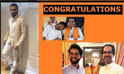 ऐसे में हाल ही में उन्हें बॉलीवुड अभिनेता रितेश देशमुख ने सीएम पद की शपथ लेने के बाद बधाई दी है। जी हां, आपको बता दें कि रितेश देशमुख ने ट्विटर के जरिए तस्वीर पोस्ट कर उद्धव ठाकरे को बधाई दी है और एक तस्वीर में उद्धव ठाकरे और उनके बेटे आदित्य ठाकरे नजर आ रहे हैं तो दूसरी तस्वीर में दोनों के पीछे बाला साहेब ठाकरे की फोटो भी लगी हुई है।