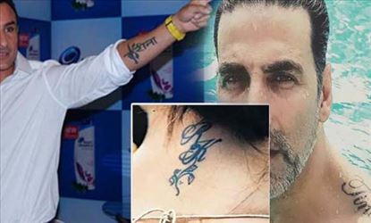अब बात करते है बॉलीवुड के खिलाड़ी माने जाने वाले अक्षय कुमार के बारे में| बता दे, कि एक फिल्म के दौरान ट्विंकल खन्ना और अक्षय कुमार एक दूसरे के करीब आये थे| इसके बाद ही उन दोनों ने आपस में शादी कर ली| अक्षय का प्यार अपनी पूरी फैमिली के लिए बराबर है| यही वजह है कि उन्होंने ट्विंकल के अलावा अपनी बेटी और बेटे दोनों का ही नाम अपने शरीर पर लिखा रखा है|