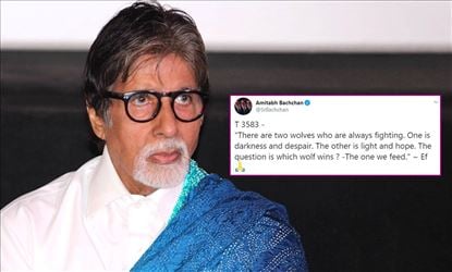 अमिताभ बच्चन ने ट्वीट किया- 'दो तरह के भेड़िये हमेशा आपस में लड़ते हैं। एक है अंधकार और निराशा। दूसरा प्रकाश और आशा है। सवाल यह है कि कौन सा भेड़िया जीतता है? जिसे हम खिलाते हैं।' अमिताभ बच्चन के इस ट्वीट से यह तो साफ नहीं है कि वह किस बारे में कह रहे हैं लेकिन लोग सोशल मीडिया पर इसे नागरिकता कानून और राष्ट्रीय नागरिकता रजिस्टर से जोड़कर देख रहे हैं।
