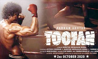 اداکار فرحان اختر نے اپنی نئی فلم ”طوفان“ کا پہلا لک جاری کیا ہے۔ باکسنگ رنگ میں لی گئی۔ اس تصویر میں فرحان بہت ہی غصہ میں دکھائی دے رہے ہیں۔ اس سلسلہ میں اداکار فرحان اختر نے اپنے اکاونٹ پر ٹوئٹ کرتے ہوئے لکھا ”جب زندگی میں مشکلوں کا سامنا کرتے ہیں۔ تو آپ اور مضبوط ہوتے ہیں۔ اس سال طوفان اٹھے گا فلم 2 اکتوبر کو ریلیز ہوگی۔ یہ فلم اختر اور رتیش سدھوانی کے فلم پروڈکشن بینر پر بنائی جارہی ہے۔
