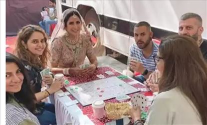 వెంటనే తన సన్నిహితులతో కలిసి సినిమా సెట్లోనే పేకాట మొదలు పెట్టేసింది. అందమైన వైట్ లెహంగా ధరించి నవ వధువును తలపిస్తున్న ట్లుగా ఉంది ఈ ఫోటోలు కత్రినా కైఫ్. భారి ఆభరణాలు సైతం ధరించి ఉంది. వధువు గెటప్ లో ఉన్న అందాల ముద్దుగుమ్మ కత్రినా కైఫ్... సినిమా సెట్లో ఖాళీ సమయం దొరకడం తో.. ఇలా తన సన్నిహితులతో కలిసి పేకాట ఆడుతూ టైం పాస్ చేస్తుంది. ప్రస్తుతం దీనికి సంబంధించిన ఫోటో సోషల్ మీడియాలో వైరల్ గా మారిపోయింది.