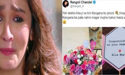 रंगोली ने ट्विटर पर लिए मजे: रंगोली ने ट्विटर पर आलिया द्वारा भेजे गए बधाई कार्ड और गुलदस्ते का फोटो पोस्ट करते हुए लिखा, यह देखो, आलिया जी ने भी कंगना को फूल भेजे हैं, कंगना का पता नहीं मगर मुझे बहुत मजा आ रहा है।