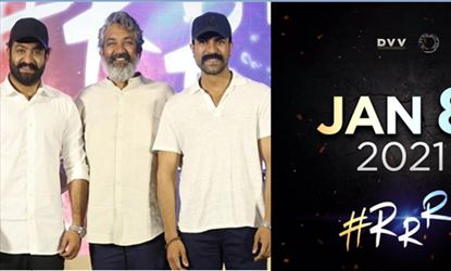 అజయ్ దేవగన్ కీలక పాత్రల్లో నటిస్తున్నారు. ఎమ్ ఎమ్ కీరవాణి సంగీతాన్ని అందిస్తున్న ఈ సినిమాకు కేకే సెంథిల్ కుమార్ ఫొటోగ్రఫీని అందిస్తున్నారు. ఇకపోతే ఇప్పటికే చాలావరకు షూటింగ్ పూర్తి చేసుకున్న ఈ సినిమాని తొలుత ఈ ఏడాది జులై 30న రిలీజ్ చేస్తామని సినిమా యూనిట్ ప్రకటించింది. అయితే ఇటీవల ఈ సినిమా రిలీజ్ డేట్ మారినట్లుగా దేశవ్యాప్తంగా పలు వార్తలు ప్రచారం అయ్యాయి. కాగా దానిపై ఇప్పటివరకు ఆర్.ఆర్.ఆర్ టీమ్ నుండి ఎటువంటి ప్రకటన లేకపోవడంతో అది నిజం కాదని అని అందరూ భావించారు. కాగా నేడు అందరికీ షాక్ ఇస్తూ, తమ సినిమాని వచ్చే ఏడాది జనవరి 8న రిలీజ్ చేస్తున్నట్లు ఆర్ఆర్ఆర్ మూవీ యూనిట్, అఫీషియల్ గా ఒక సంచలన ప్రకటన రిలీజ్ చేసింది.