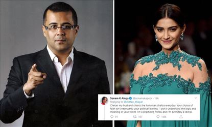 चेतन भगत के इस ट्वीट पर काफी तहलका मचा हुआ है। इस ट्वीट के बाद एक्ट्रेस सोनम कपूर ने भी भगत को आढ़े हाथों लिया है। सोनम कपूर ने अपने पति आनंद अहूजा का जिक्र करते हुए चेतन को जवाब दिया है। उन्होंने ट्वीट किया है, 'चेतन मेरे पति हर दिन हनुमान चालीसा पढ़ते हैं। आपका विश्वास ये तय नहीं कर सकता कि आपका राजनीतिक झुकाव किस तरफ होगा। मुझे ना तो ये लॉजिक समझ आया है और ना ही आपका ट्वीट। मैं हिंदू धर्म में भी मानती हूं और अपने आप को लिबरल भी कहती हूं'।