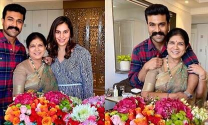 తాజాగా రామ్ చరణ్ తన తల్లి సురేఖ పుట్టినరోజు వేడుకలు స్వగృహంలో జరిపారు. చరణ్ భార్య ఉపాసనతో కలిసి ఆయన అమ్మగారైన సురేఖ గారి పుట్టినరోజు సెలెబ్రేట్ చేశారు. సురేఖ తనయుడు రామ్ చరణ్, కోడలు ఉపాసన బర్త్ డే విషెస్ తెలియజేశారు. "హ్యాపీ బర్త్ డే అత్తమ్మా... లవ్యూ" అంటూ ఉపాసన ఇన్ స్టాగ్రామ్ లో పోస్టు చేశారు. ఉపాసన పోస్టు చేసిన ఫొటోలో రామ్ చరణ్, ఉపాసన మధ్యలో సురేఖ చిరునవ్వులు చిందిస్తూ ఉన్నారు.
