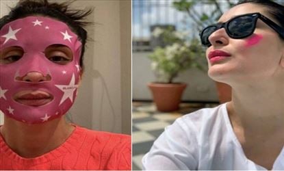 एक दिन पहले ही करीना ने अपने चेहरे पर गुलाबी रंग बिखेरते हुए अपनी एक और तस्वीर पोस्ट की थी। सभी को देखते हुए, अभिनेत्री ने लिखा, "मुझे लगता है कि गुलाबी मेरा रंग है। सहमत हूँ?" हम शर्त लगाते हैं कि बेबो के सौंदर्य शासन को देखने के लिए प्रशंसक अधिक उत्साहित हैं। तस्वीर ने अपने प्रशंसकों के साथ-साथ परिवार और दोस्तों से भी कई टिप्पणियां आमंत्रित कीं। करिश्मा ने तस्वीर पर टिप्पणी की और लिखा, "यह मास्क !"