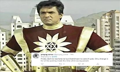 एक यूजर ने कहा, "अंत में देश को बचाने के लिए शक्तिमान को आना ही पड़ा। केवल बदलाव यह है कि इस बार शक्तिमान लोगों को बचाते हुए मास्क लगाएगा।"