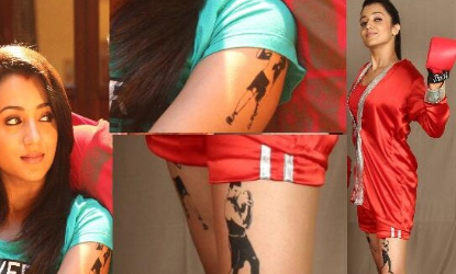 She tattooed a hero pic oh her hands and legs recently, don’t jump into assumptions that it’s Rana but we are talking about trisha’s next film. Trisha is working for her next tamil film and movie is starring Jayaram ravi, Trisha is tattooed with Jayaram Ravi all over her body and she would expose that in movie.
