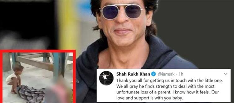 शाहरुख खान ने मीर फाउंडेशन के ट्वीट को रिट्वीट करते हुए लिखा है, 'आप सब लोगों का शुक्रिया जो आपने इस बच्चे से हमें मिलवाया. हम प्रार्थना करते हैं कि वह अपने माता-पिता को खोने के दर्द को सहन कर सके. मैं जानता हूं कैसा महसूस होता है...हमारा प्यार और साथ इस बच्चे के साथ है.' वायरल वीडियो में बिहार के मुजफ्फरपुर रेलवे स्टेशन पर एक बच्चा अपनी मृत मां को चादर से ढंकेते हुए नजर आ रहा था. अरविना खातुन नाम की 35 साल की महिला प्लेटफॉर्म पर मृत थी, जिसमें उसके सामान से भरे दो बैग भी उसके पास रखे हुए थे. महिला और उसके दो छोटे बच्चे 25 मई को अहमदाबाद से श्रमिक स्पेशल ट्रेन से आए थे.