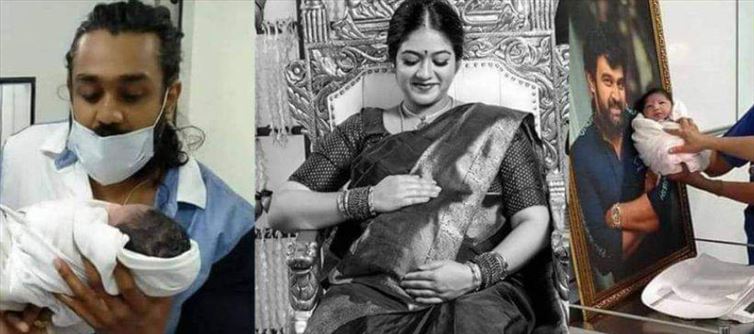 కన్నడ హీరో చిరంజీవి 36 ఏళ్ళ వయసులోనే గుండెపోటుతో ఈ లోకాన్ని వదిలి వెళ్ళిపోయిన సంగతి తెలిసిందే. అంత చిన్న వయసులోనే ఆయన ఈ లోకాన్ని విడిచి వెళ్ళిపోతాడని ఎవ్వరూ అనుకోలేదు.దీంతో ఒక్కసారిగా కన్నడ ఇండస్ట్రీ మొత్తం షాకయ్యింది. ఆయన కుటుంబ సభ్యులను తీవ్ర దిగ్బ్రాంతికి గురిచేసాడు చిరంజీవి . అయితే ఆయన పోయే ముందు అతని భార్య మేఘన రాజ్ గర్భవతి అన్న సంగతి తెలిసిందే. ఈ క్రమంలో చిరంజీవి కుటుంబ సభ్యులు ఆమె పట్ల చాలా జాగ్రత్త వహించారు.