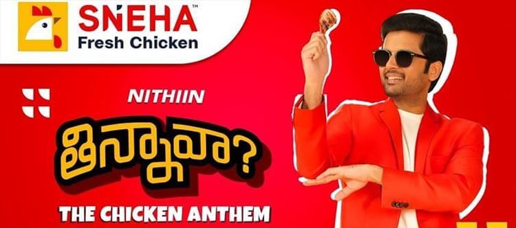 Today, the ad commercial is dropped and nithiin is seen promoting hyderabad based sneha chicken brand. anil Kumar, who was co-writer and associate director for rebel star Prabhas' recent blockbuster film saaho, made the ad film with mesmerizing visuals and catchy song according to the tastes of current generation.