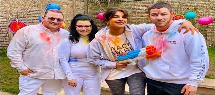 प्रियंका पानी-बंदूक के साथ पोज देती हुई नजर आती हैं और निक पर उनके चेहरे पर रंग, लंदन में उनके घर के पिछवाड़े जैसा दिखता है। अभिनेता ने सजी हुई मेज की कुछ तस्वीरें भी साझा कीं, जहां सभी प्रकार के रंगों और प्राकृतिक फूलों का सुझाव दिया गया था कि प्रियंका की होली ऑर्गेनिक रंगों के बारे में थी। इंस्टाग्राम पर तस्वीरों को साझा करते हुए, अभिनेता ने लिखा, "होली, रंगों का त्योहार मेरे पसंदीदा में से एक है we आशा है कि हम सभी इसे अपने प्रियजनों के साथ मना सकते हैं, लेकिन हमारे घरों में!