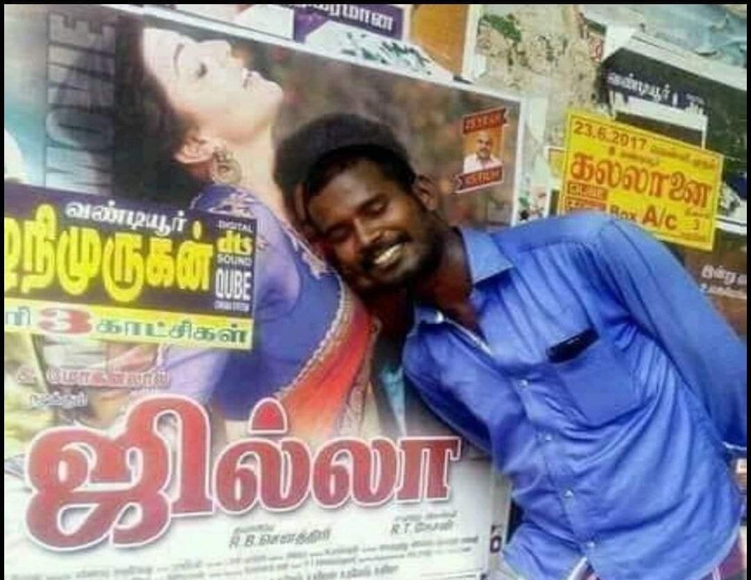 From the posters, it was obvious that the photo was taken in Vandiyur, tamil Nadu. The still was taken from Vijay's 'Jilla' movie. It was unclear whether the guy who took such a photo was under the influence of alcohol. Whatever, the photo has gone viral and it even reached Kajal's eyes. Fans are sharing this photo for various trolls and memes and now this guy has been a famous shot.