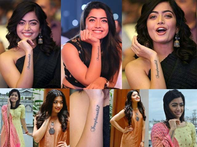 ఇక మరో యంగ్ స్టార్ హీరోయిన్ రష్మిక. కుడి చేతి పై కూడా ఒక టాటూ ఉంటుంది.'ఇర్ రిప్లేసబుల్'అనే పదాన్ని ఆమె టాటూ వేయించుకుంది. దీనికి మీనింగ్ ' సాటిలేనిది 'అని అర్థం.