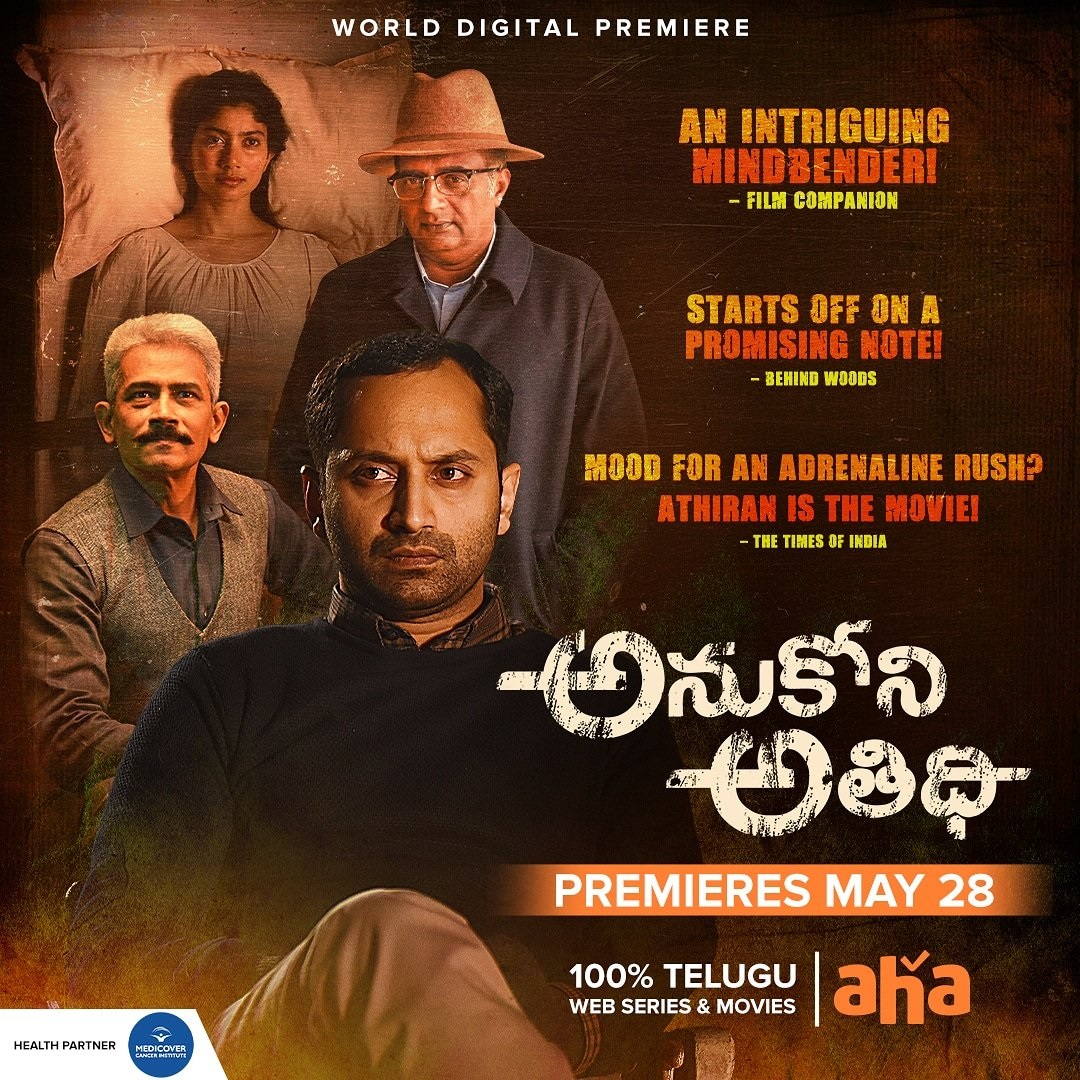The movie has cinematography by Anu Moothedath and Editing by Ayoob Khan. Today, the movie is getting dubbed in telugu under the title 'Anukoni Athidhi' and is releasing on the Aha platform. The movie had huge expectations and the news has already gone viral. sai pallavi has given a stellar performance in this movie. Hope this movie is loved by the telugu audience! The expectations are higher and the movie is expected to do  some records in the wallet PLATFORM' target='_blank' title='digital-Latest Updates, Photos, Videos are a click away, CLICK NOW'>digital medium.