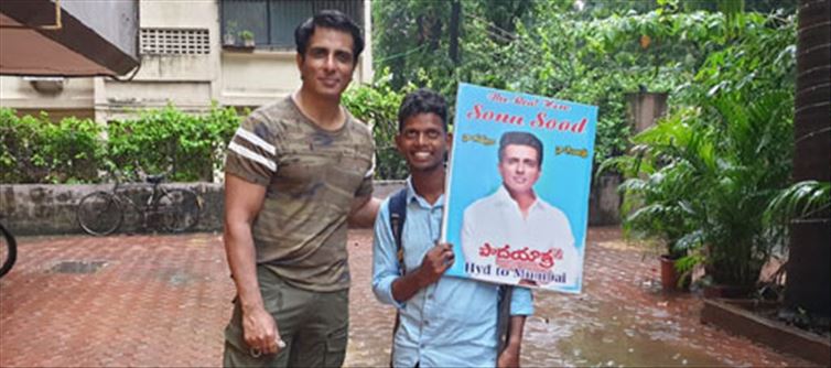 వెంకటేష్ తో కలిసి దిగిన ఫోటోను ట్వీట్ చేశారు. వెంకటేష్ నన్ను కలిసేందుకు హైదరాబాద్ నుంచి ముంబై నడుచుకుంటూ వచ్చాడు. అతడు తిరిగి ఇంటికి చేరుకునేందుకు నేను రవాణా సౌకర్యం ఏర్పాటు చేశాను. నాకు ఓ వైపు గర్వంగా ఉన్నప్పటికీ ఇలాంటివి ప్రోత్సహించలేను. దయచేసి ఎవరూ ఇలాంటి చర్యలకు ఉపక్రమించవద్దు అని పేర్కొన్నాడు. అంతేకాకుండా ఆ వ్యక్తి తో కాసేపు ముచ్చటించి అతని ఇబ్బందులను తెలుసుకుని ఆ ఇబ్బందులను తీర్చుతానని మాట ఇచ్చాడు.