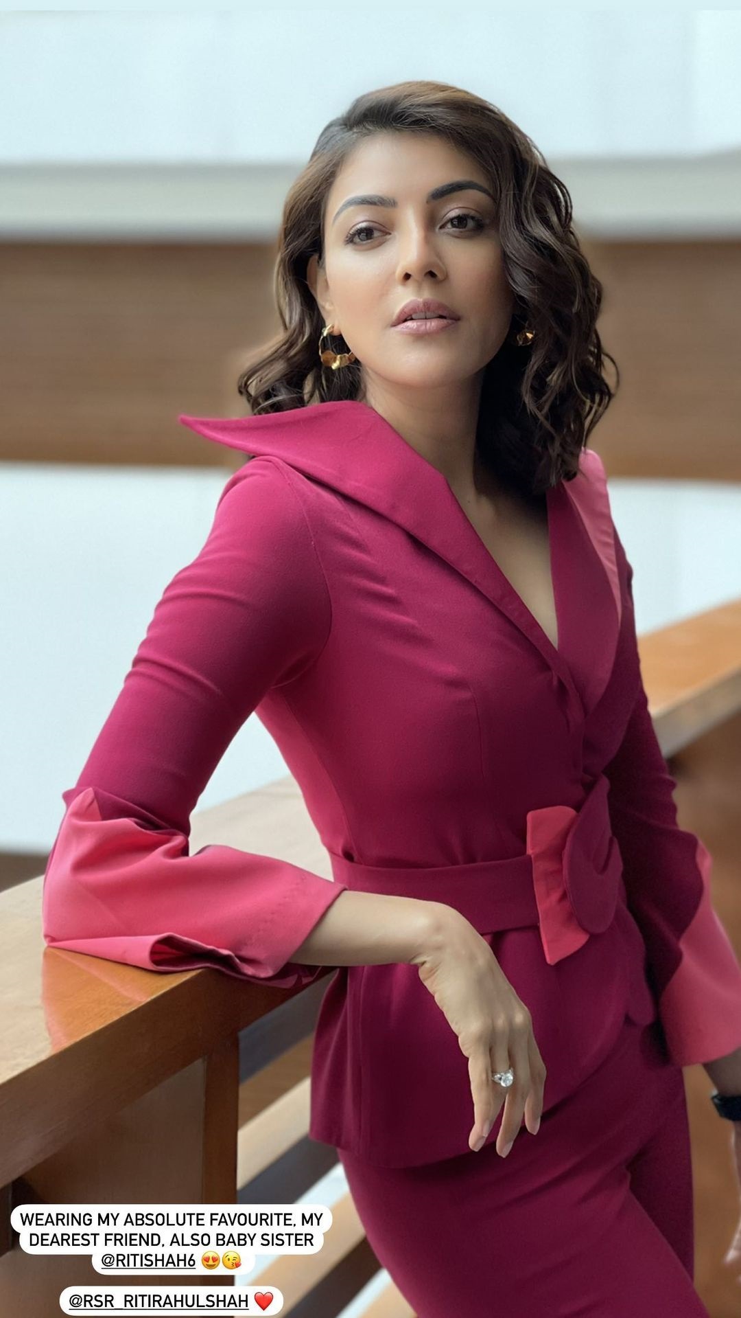 Kajal Aggarwal seems to have found a new love in the form of 'Pink' color as she was spotted wearing pink earlier and she captioned those photos as 'Blossom' on her insta post and again she has done a pink colored outfit and made a recent post through her insta stories as well as insta post. However, the glam and glitz of kajal aggarwal from her prime days is totally missing in this pink outfit which was uploaded recently.