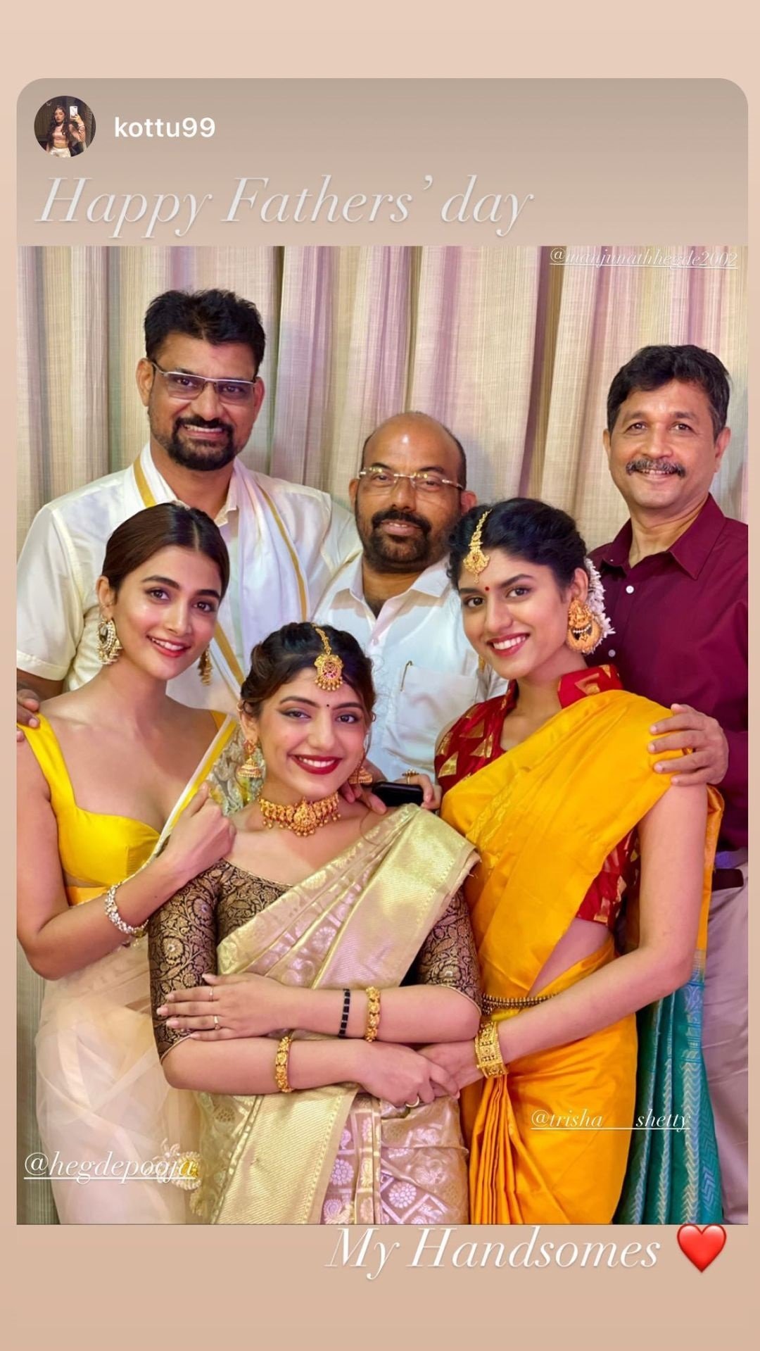 Pooja Hegde who is totally addicted to instagram and gives constant updates on her everyday activities ensured to share photos on her private instagram profile stories to her fans and followers. She was sporting a Yellow blouse and a long skirt and was keeping a formal hairstyle in the function. pooja hegde was seen with her dad and other members of the family in the photos which she has shared.