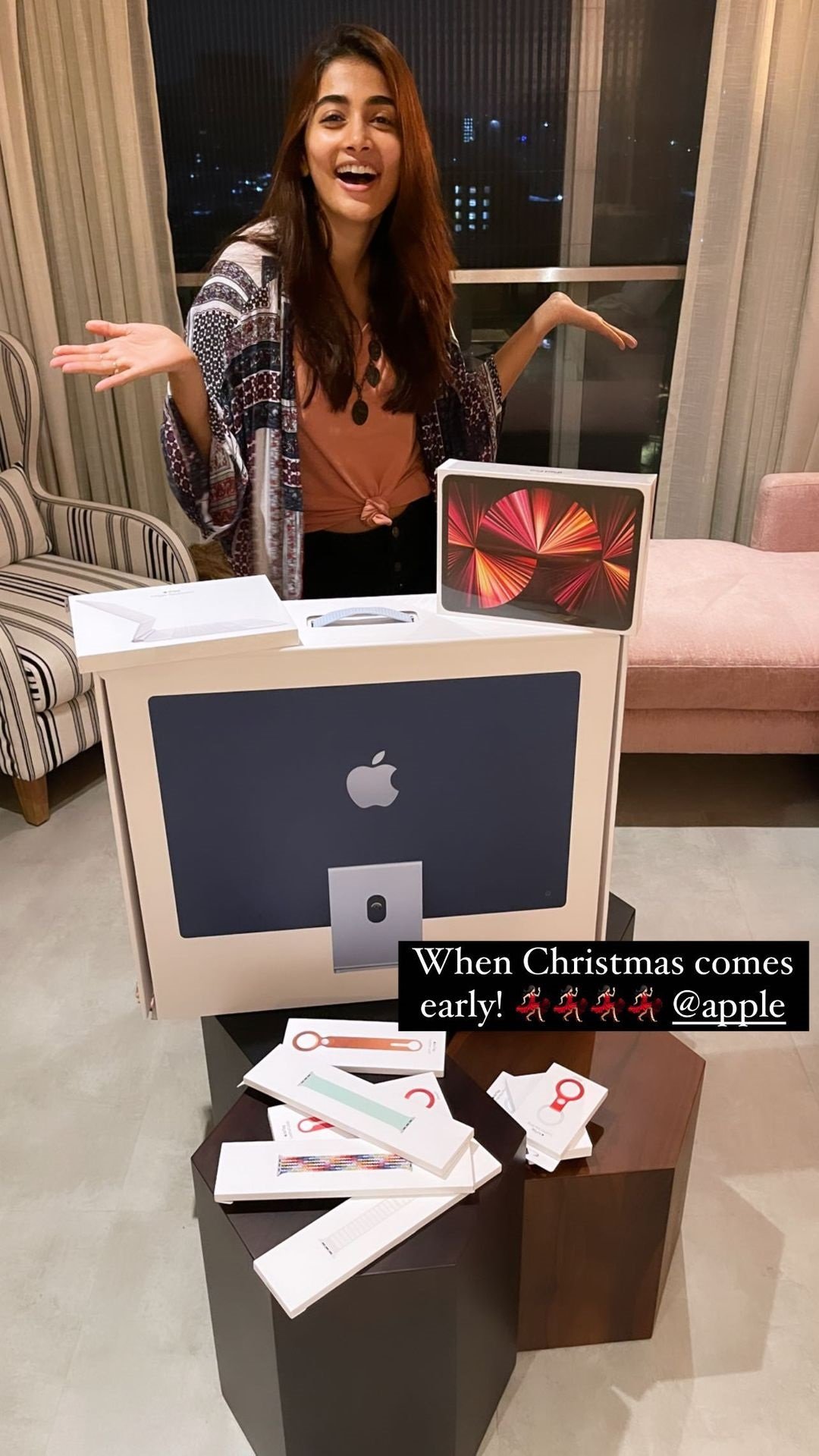 It seems pooja hegde has grabbed her christmas gifts very earlier as we are still 5 days away to complete even the month of June. The actress has got a brand new iMac and she has captioned that as 'Early christmas Gift'. She even started to unwrap the gift from her residence and we can see pooja excited while removing the stickers from the iMac package and she was quite enthusiastic as well.