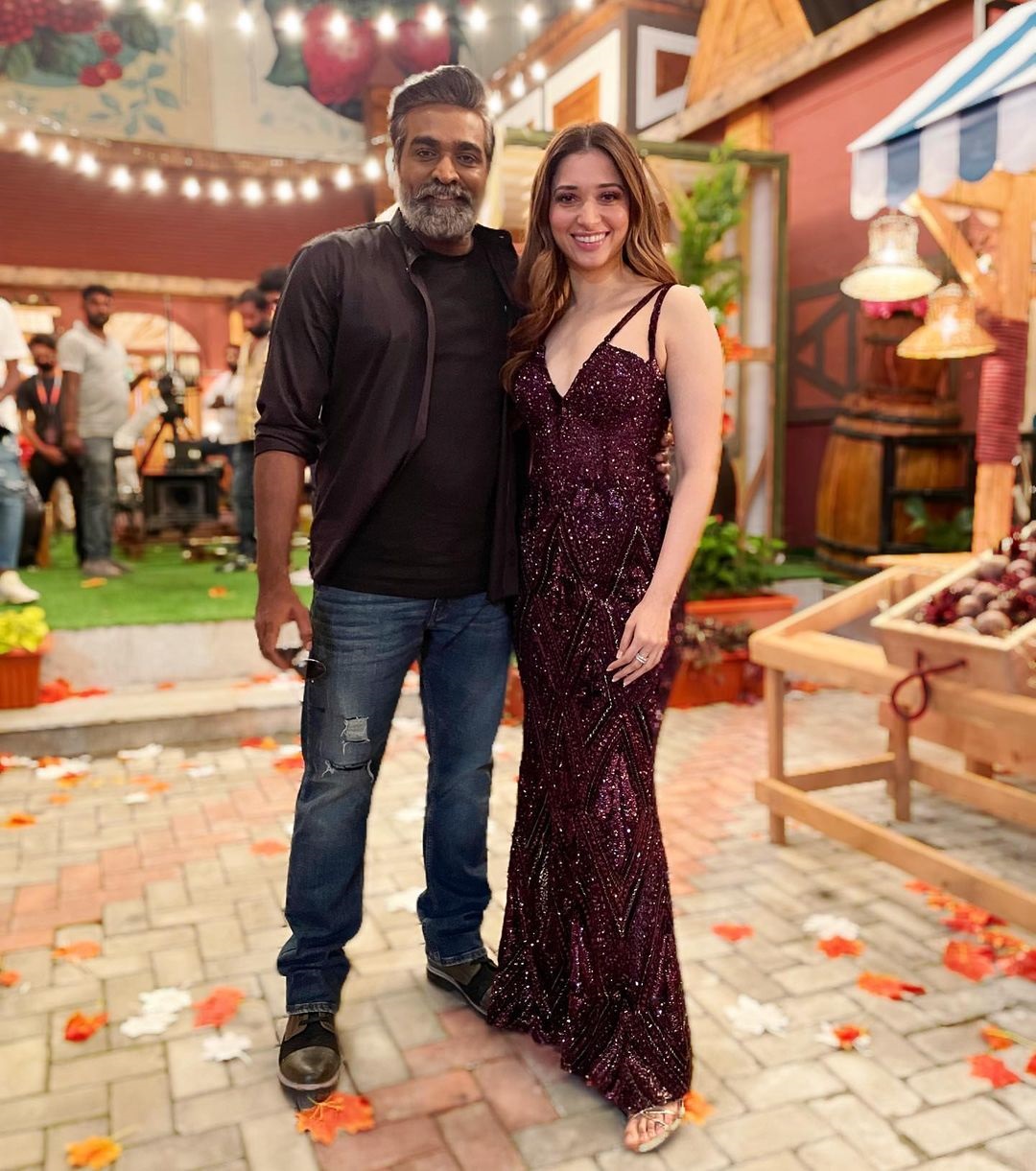 Tamannaah Bhatia will be doing the host work and the actress already teased her fans from the sets of this master Chef. Now, she posted a photo on her personal insta profile account where Tamanna was seen with vijay sethupathi in another dapper outfit.