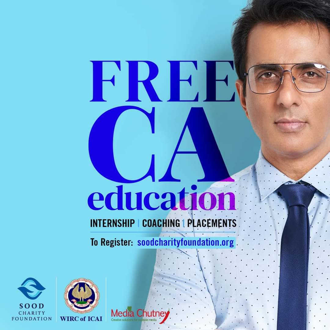 తమ ఫౌండేషన్ ఆధ్వర్యంలోనే ఉచిత సీఏ కోచింగ్ సెంటర్లను ప్రారంభిస్తున్నట్టు ప్రకటించారు. ఇందులో ఇంటర్న్షిప్, కోచింగ్, ప్లేస్మెంట్లను ఇప్పిస్తామని కూడా స్పష్టం చేశారు. తమ సూద్ చారిటబుల్ ట్రస్టు ఆధ్వర్యంలో ఇది నిర్వహిస్తామని సోనుసూద్ ప్రకటించాడు. పేద విద్యార్థులు ఎవరైనా చదవాలనుకుంటే తామే బాధ్యత తీసుకుంటామని సోనూ చెప్పాడు.