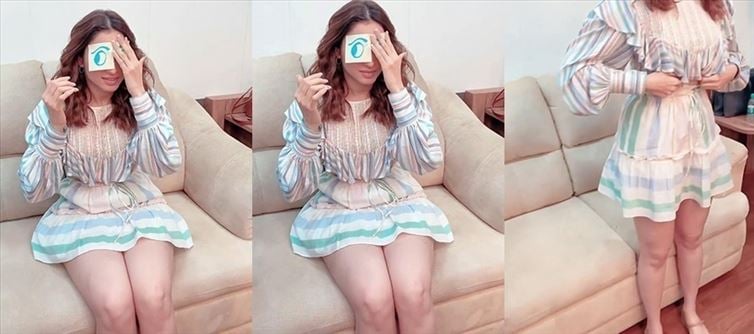 This is not the first time, tamannaah makes some weird and funny instagram reels. She has done it before and now she has done it again with her friend and this time she has absolutely grabbed all attention with her sexy thigh show. We can even see, tamannaah trying to adjust her dress and cover her thighs before sitting on the couch. She was wearing the fake eyes sticker over her eyebrows.