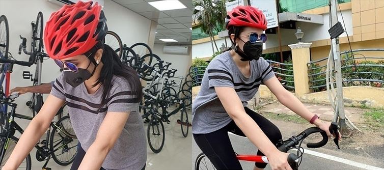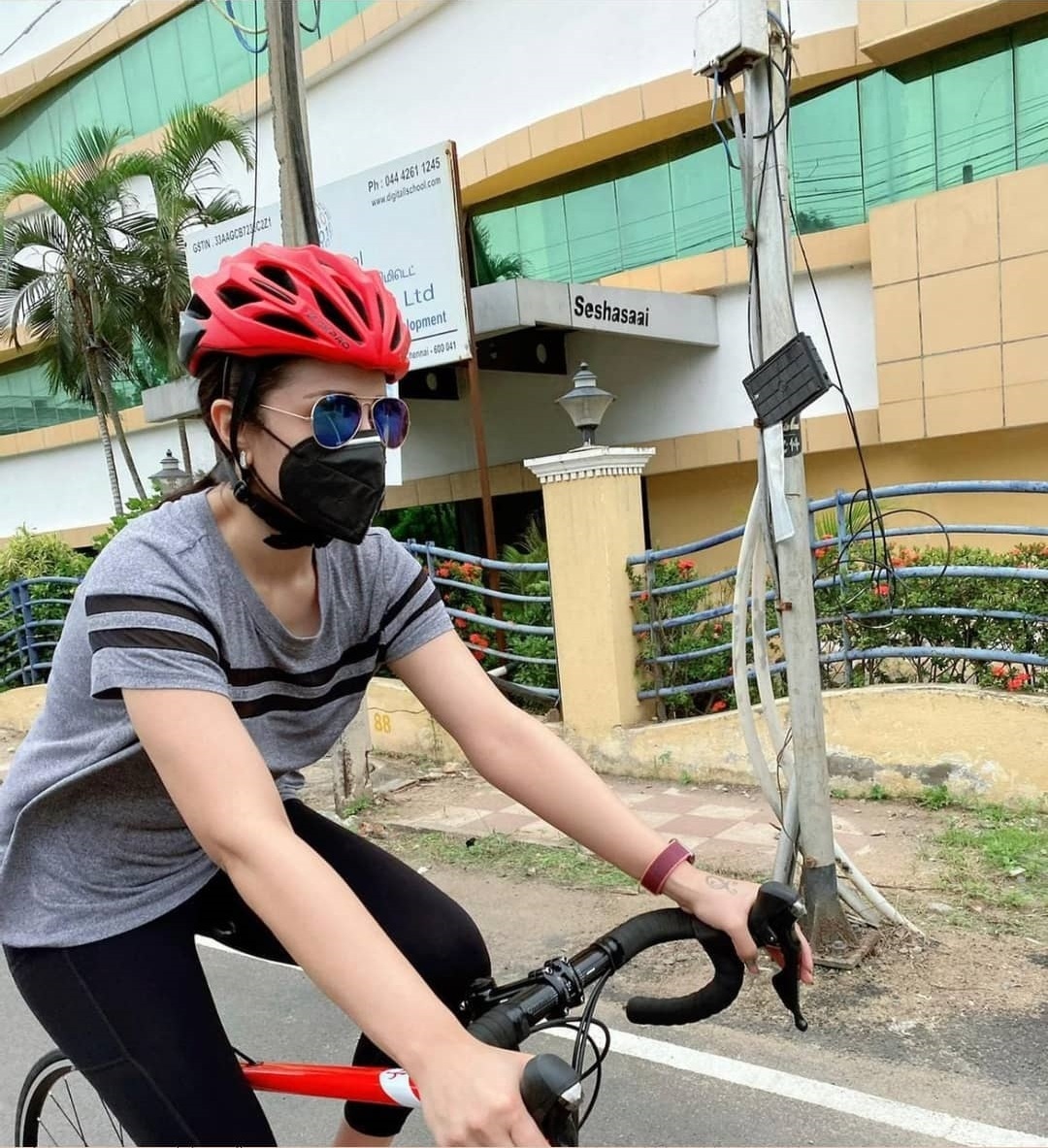 Now, trisha has shared several photos again as if she is buying a bicycle and she also captioned that as her new ride. Also, Trisha's bicycle helmet was in Black and red Color and that also indicates particular party support and Trisha's bicycle ride on the streets of chennai city has been the talk of the town right now. trisha was absolutely looking gorgeous while riding the bicycle and these photos are proof.