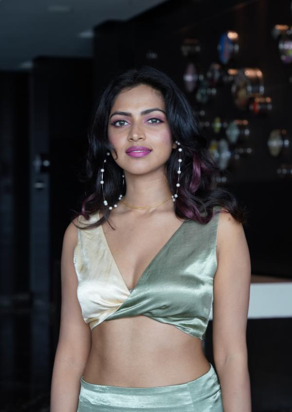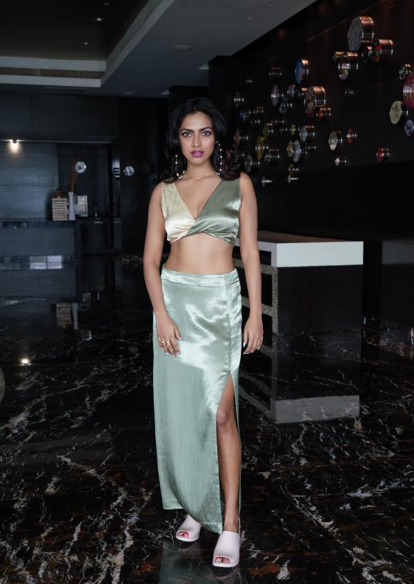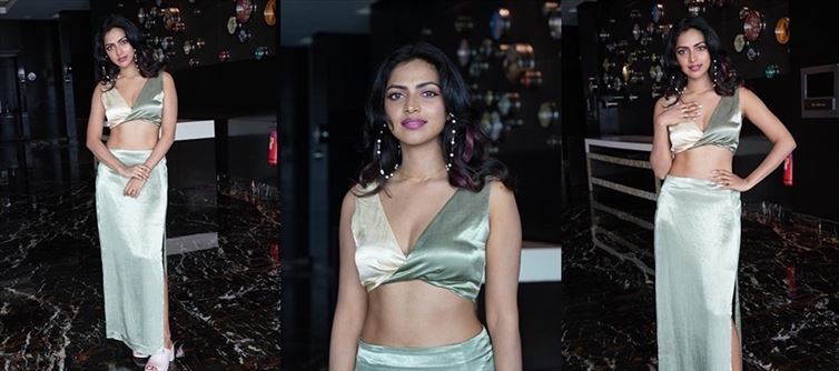 Now, her web series is all set to release tomorrow and the promotional works have been kickstarted by amala paul in Hyderabad. During the promotional works, amala paul was seen in a silver co-ords dress in a V-Shaped blouse and she was also wearing a slit skirt and was absolutely lighting up with her hotness.