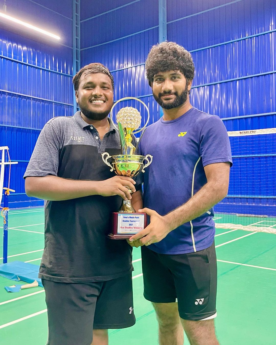 ఆయన తాజాగా జరిగిన హైదరాబాద్ లోని ఒక బ్యాడ్మింటన్ టోర్నమెంట్ లో రెండు రకాల కేటగిరీలలో గెలిచి కప్ లు సాధించారు. సింగిల్స్ లో విజేతగా నిలవడంతో పాటు డబుల్స్ లో కూడా ఆయన తన సత్తా చాటి ఛాంపియన్షిప్ కప్ సొంతం చేసుకున్నారు. అయితే సోషల్ మీడియా వేదికగా ఆయన ఛాంపియన్షిప్ కప్ అందుకుంటున్న ఫొటోలు వైరల్ గా మారాయి. ఒక చిత్రంలో ఆయన బ్యాట్మెంటన్ జెర్సీ ధరించి ఛాంపియన్షిప్ కప్ పట్టుకుని నవ్వుతూ కనిపించారు. మరో పిక్చర్ లో ఆయన తన క్రీడా పార్ట్నర్ తో కలిసి కనిపించారు. డబుల్ కేటగిరిలో కూడా విజయం సాధించి మరొక ఛాంపియన్షిప్ కప్ అందుకున్నట్లు తెలుస్తోంది.