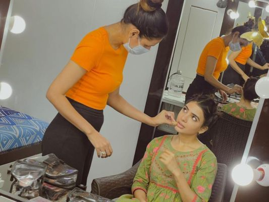 అయితే ఈ ఫొటోలో మేకప్ ఆర్టిస్ట్ సాధన సింగ్ సమంతకు మేకప్ వేస్తూ కనిపించారు. అంతేకాక.. ఈ ఫొటోలో సమంత గ్రీన్ కుర్తా ధరించి చాలా అందంగా కనిపిస్తుంది. కాగా.. సమంత అక్కినేని నటిస్తున్న శాకుంతలం సినిమాలో అల్లు అర్జున్ కుమార్తె అల్లు అర్హ ప్రిన్స్ భారత పాత్రలో నటిస్తున్న సంగతి తెలిసిందే.