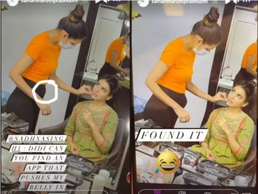 కాగా.. సమంత ఇప్పుడు అలా క్యారవ్యాన్లో చేసిన ఈ అల్లరి పని ఇప్పుడు సోషల్ మీడియాలో వైరల్ అవుతుంది. కాగా.. సమంత ఓ కొత్త యాప్ను వాడేసి ఆమె మేకప్ మెన్ అయిన సాధన సింగ్ శరీర భాగాన్ని పెంచుతున్నారు. అయితే సాధన సింగ్ సమంతకు మేకప్ వేస్తున్న క్రమంలో ఆమె నడుము భాగం కాస్త ముందుకు వచ్చినట్టు కనిపించి.. నా పొట్ట భాగాన్ని లోపలకి పంపించే యాప్ ఏదైనా ఉందా? అన్నట్లు సమంతని అడుగుతుంది ఆమె. ఇక దానికి సమంత పొట్ట లోపలకి పోవాల్సింది పోయి.. బయటకు వచ్చేలా చేశారు.. అనే పిక్స్ పోస్ట్ చేశారు. అయితే ప్రస్తుతం ఈ ఫోటోలు నెట్టింట్లో వైరల్ అవుతుంది.