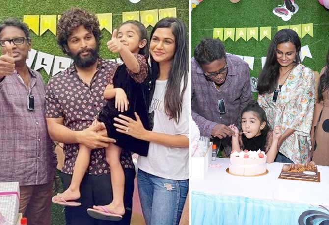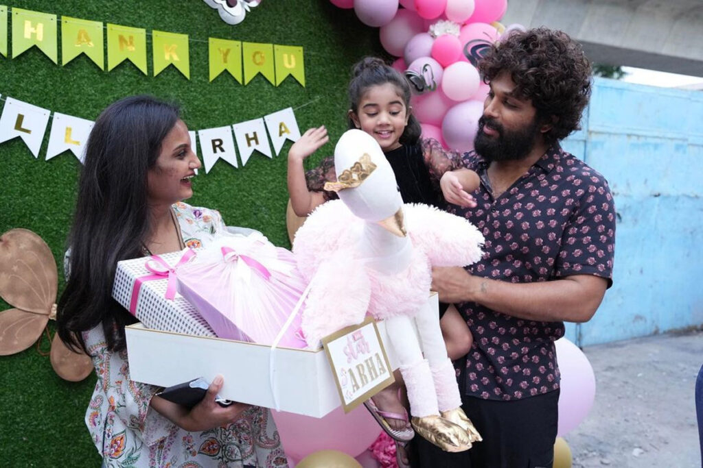 ఇప్పటికే అర్హ పై షూటింగ్ పార్ట్ చిత్రీకరణ పూర్తయింది. వారం క్రితం శాకుంతలం చిత్ర బృందం సెట్లు, బెలూన్లతో ఘనస్వాగతం పలికింది. తొలిరోజు చిత్రీకరణకు అర్జున్ -స్నేహ సైతం వచ్చారు. అక్కడ అల్లు అర్జున్ అర్హ కోసం `ఫాల్కన్ బస్`ను ఏర్పాటు చేయ‌డంతో ఇండ‌స్ట్రీ అంద‌రిలో చర్చ మొద‌లైంది.అర్హ‌పై షూటింగ్‌ను వారం రోజుల్లోనే పూర్తి చేశారు గుణశేఖ‌ర్‌. అయితే వీడ్కోలు పలికే స‌మ‌యాన్ని కూడా స్వాగతం ప‌లికిన విధంగానే ఏర్పాటు చేసింది. బెలూన్లు, సెట్ మ‌ధ్య‌ అర్హ కేక్‌ను క‌ట్ చేసింది. చివ‌రి రోజు కావ‌డంతో అల్లు అర్జున్, స్నేహ కూడా వ‌చ్చారు. అయితే ఫోటోల‌లో అర్జున్‌, స్నేహ‌ ఆనందం కుటుంబంలో స్పష్ఠంగా కనిపిస్తోంది. అల్ల అర్జున్ కొడుకు కంటే ముందే కూతురునే ఇండస్ట్రీకి ప‌రిచ‌యం చేస్తున్నాడు.