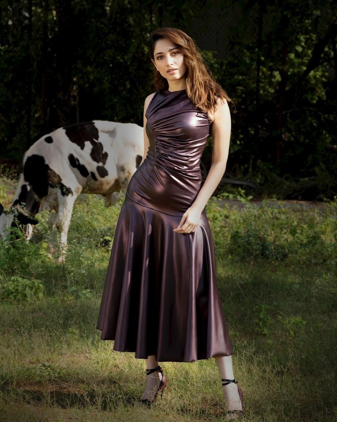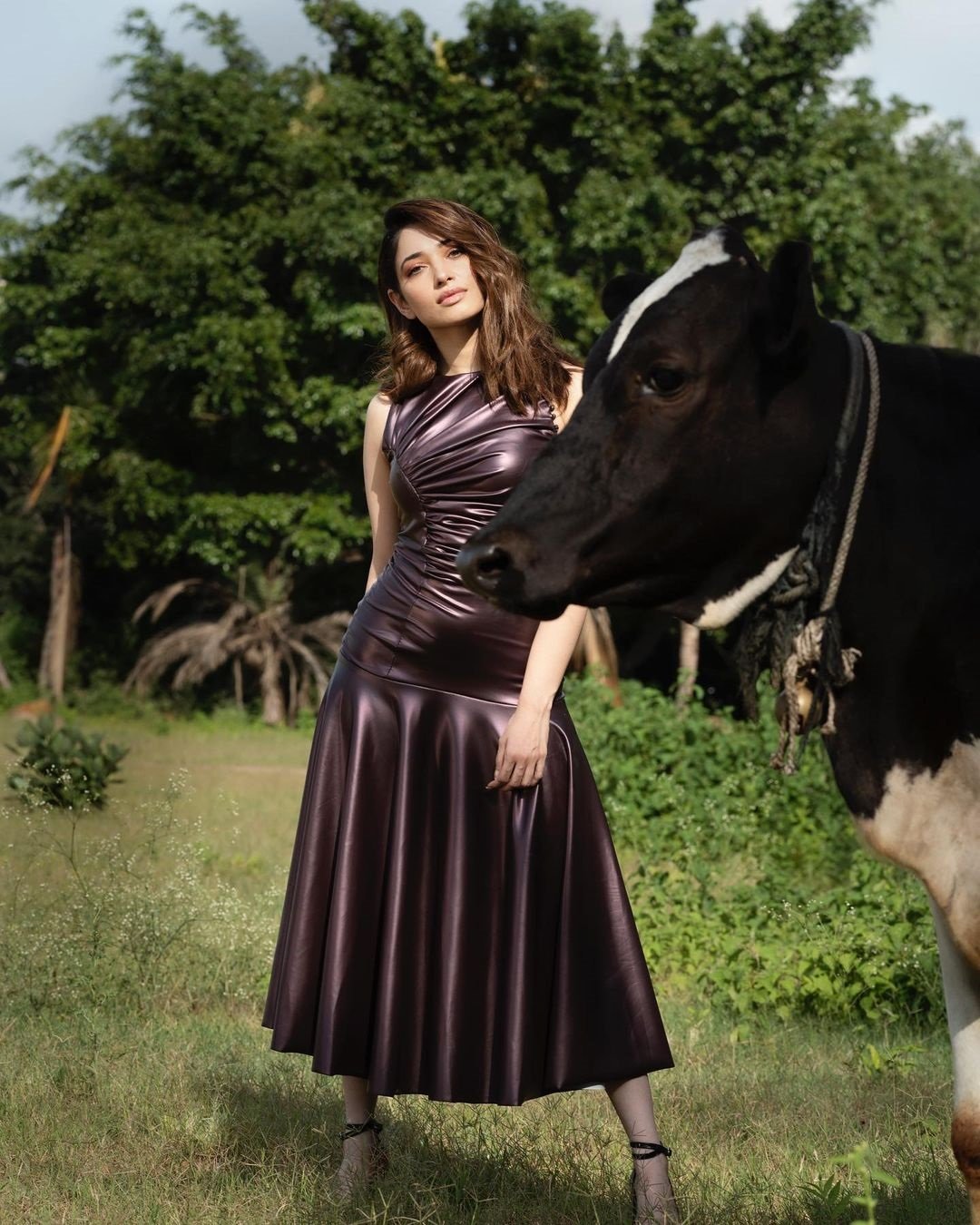 Her close friend shruti haasan commented on the photos with a red heart emoji and tamannaah has definitely allowed the dress to do talking and she also kept her makeup simple and subtle. The cows in the backdrop just made the looks even more lively and she even made quirky captions for those photos and she later shared close-up shots of the photoshoot and even they are absolutely breathtaking.