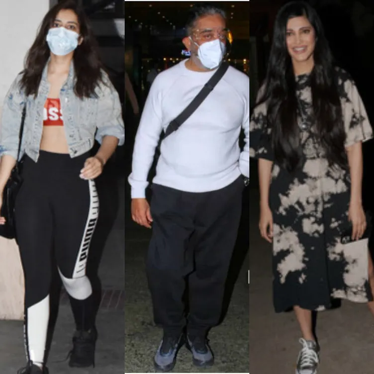 Similarly, shruti Haasan's father kamal haasan also got papped at mumbai Airport as he wrapped up an important schedule of shooting for his upcoming movie 'Vikram' and we can see kamal haasan in a grey sweatshirt with black joggers and he was clearly wearing protective masks. kamal haasan is expected to begin the shooting of the 5th season of bigg boss tamil from next month and he also fulfills his duties as a politician.