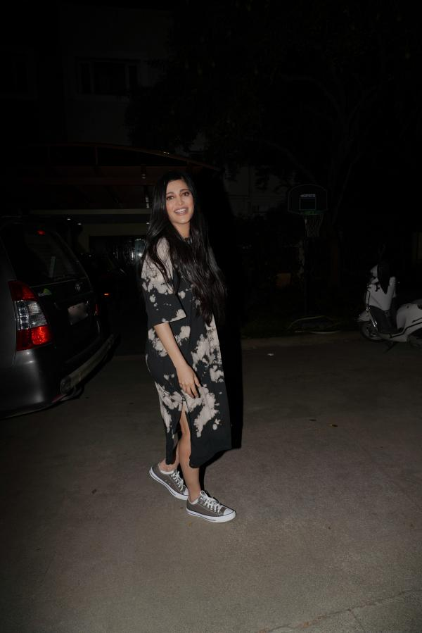 Shruti Haasan who started shooting for her Pan-Indian flick got caught in her comfy tie-dye costume and she got papped when she was walking out of a recording studio and she was all smiling. She began shooting for 'Salaar' and she herself revealed it with a black and white photo post on her social media account. Raashii rocked her sexy gym look with a denim jacket which was very short and she clearly nailed it.