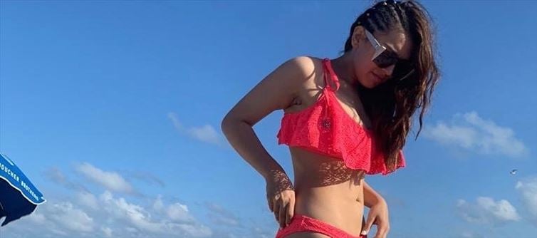 The hot diva has shared those jaw-dropping photos on her official instagram account and has created a huge noise and after some time she removed a few of those photos as they got some derogatory comments. The actress was sunbathing in a pink two-piece bikini and she was also wearing a pair of dark shades to match her hotness quotient.