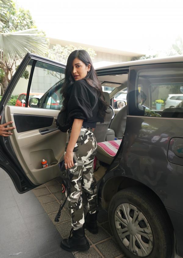 She also wore camouflage pants with a fanny bag around her waist and was completely breathtaking and inviting. She never wore any other accessories and kept it simple with just matching comfy boots and she definitely gave us some new fashion goals. The next schedule of 'Salaar' is expected to begin after a gap of one week at hyderabad once again and in the next schedule, prabhas and shruti haasan will be participating in some action sequences and chasing scenes.