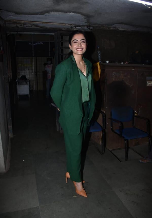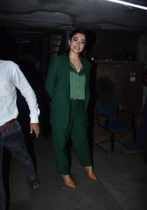 Rashmika was sighted in Bandhra, Mumbai, earlier yesterday and the eagle eyes of Paparazzi caught her as she is a well-known face among the paparazzi because she is photographed virtually every day. The actress can be seen in the images wearing a green co-ord suit set and displaying her stunning beauty and we can see, rashmika rocking the formal attire and exuding serious businesswoman vibes.