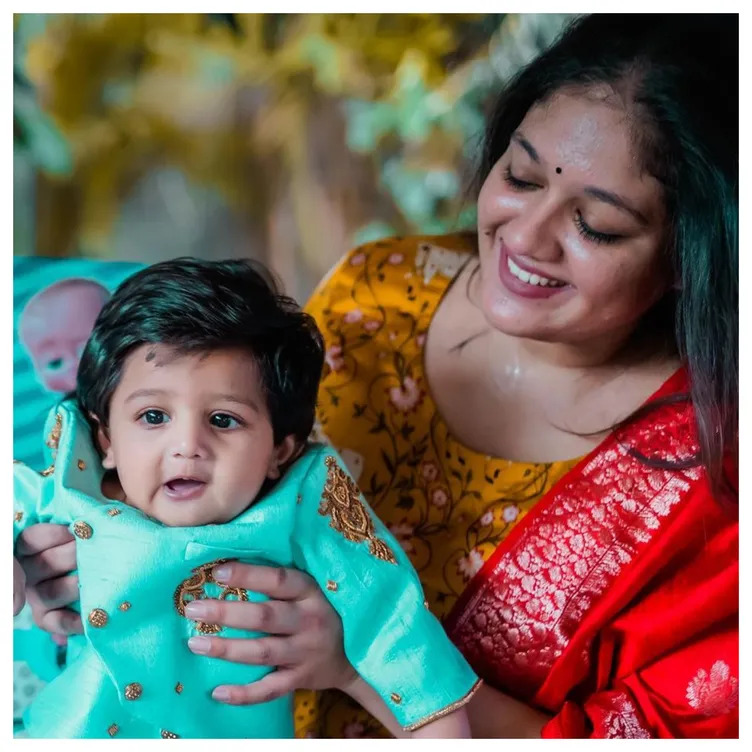 Meghana raj has often liked to dress up her son as Lord Krishna, and her wish came true this Janmashtami and she shared a snapshot of herself cuddling Jr chiru on the instagram account and the little kid appears to be suited up as Lord Krishna. Meghana raj captioned the photo, " "Nanaa benae mudu bangaraa nanaa benae muduu bangaraa nana baene All the best for krishna Janmashtami!"
