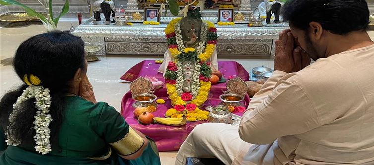 చిరంజీవి ఇంట్లో వినాయకుడి ముందర చిరంజీవి తన సతీమణి సురేఖ తో కలిసి ఇద్దరు పూజలు కూర్చున్నట్లు మనకి ఇక్కడ ఉన్న ఫోటోలు కనిపిస్తోంది.తన ఇంట్లో ఒక మట్టి వినాయకుడిని ప్రతిష్ట చేసి,ఆ విగ్రహానికి పూజలు నిర్వహిస్తున్నా ఎంతో భక్తి శ్రద్ధతో చేసిన పూజ ఫోటోలను చిరంజీవి సోషల్ మీడియా ద్వారా షేర్ చేస్తూ వినాయక చవితి శుభాకాంక్షలు తెలియజేశారు.