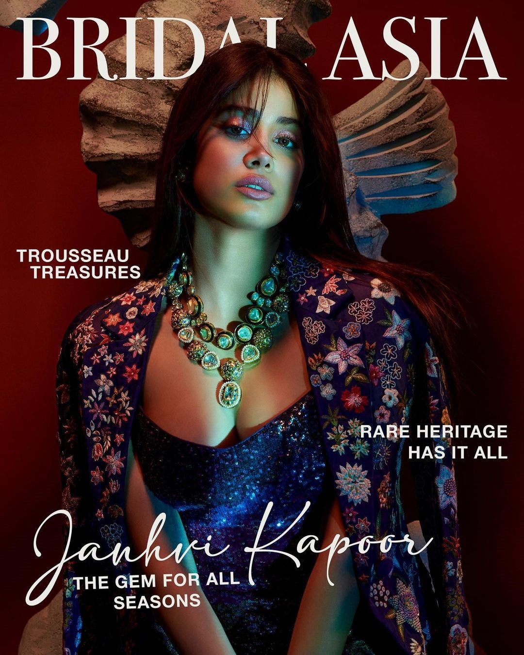 Janhvi Kapoor's gorgeous lehenga appearance for the front of Bridal Asia Magazine set the world on fire. In a Gianna Pearl subdued pink shimmer tulle wedding lehenga ensemble, she looks absolutely stunning as a bridal model for spring brides. The ensemble features silver and gold work, as well as an Rs.3 lakhs stitched blouse by Dolly J Studio. Janhvi accented the ensemble with a piece of plush silver jewelry set from Rare heritage, which added to her captivated appearance.